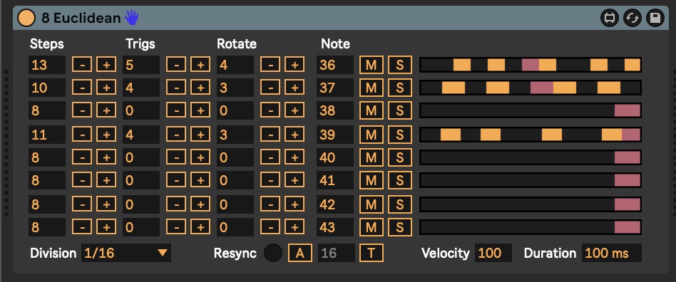 Just a quick little 8-channel Euclidean sequencer I made in May 2022 to demonstrate features of Max 8.3!