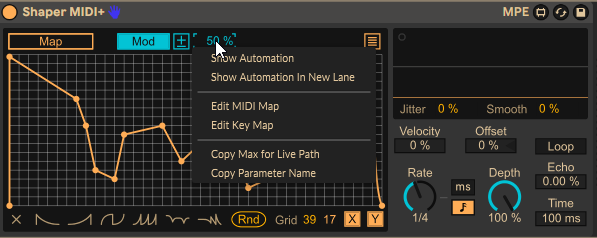 Description: This is Live 12's Shaper MIDI device, but with the following changes: