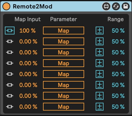 | Description: | A quick little device I whipped up that basically converts remote control to modulation. Use this for pre-Live 12 modulators/LFOs/etc., so that you can use the new modulation mode with older modulators that haven't been updated. Step 1. Map any modulator to one the inputs of Remote2Mod. Step 2. Map the corresponding output to anything you want to modulate. Step 3. Enjoy still being able move that knob! Changelog: 1.1 – - added linking inputs to the above channel (through switches) - various ui tweaks |