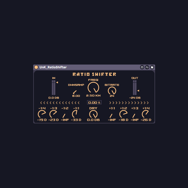 | Description: | RatioShifter is a pitch shifter that allows you to mix different shifting ratios out of a base frequency. It contains also a simple downsample and bitrate control as well as a damping LPF to remove harshness. |