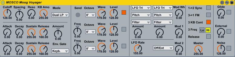 - All parameters from this device are stored when making presets, so this makes it very easy to manage presets for the Moog Voyager from within Ableton. Of course all parameters can also be automated in Ableton.