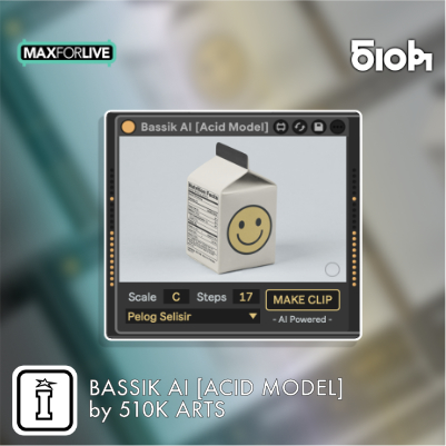 | Description: | The Bassik Acid Model from 510k is a Max for Live device designed for creating acid basslines. It emphasizes user control, combining straightforward functionality with the versatility to tweak and generate dynamic patterns. This tool is ideal for producers looking to incorporate classic acid patterns into their workflow with ease. Key features include: - Intuitive Interface: Streamlined controls for quick access and manipulation. - Versatile Acid Pattern Design: MIDI crafted for authentic acid bass patterns. - Save your output: Write directly to a MIDI Clip for further editing |