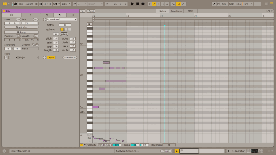 | Description: | Extends a note sequence by looping through each feature (pitch, velocity, timing, etc) at an independent cycle length. demos : https://www.youtube.com/watch?v=t3HWAHTsq0k https://www.youtube.com/watch?v=ngjDbXuiGhI latest updates : 2025 04 17 > included octave sequence and offset shifting mode 2025 04 21 > up to 512 generated notes (slower) and global "adapt" bias |