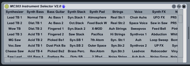 | Device File: | MC303 Instrument Selector V2.0.amxd |