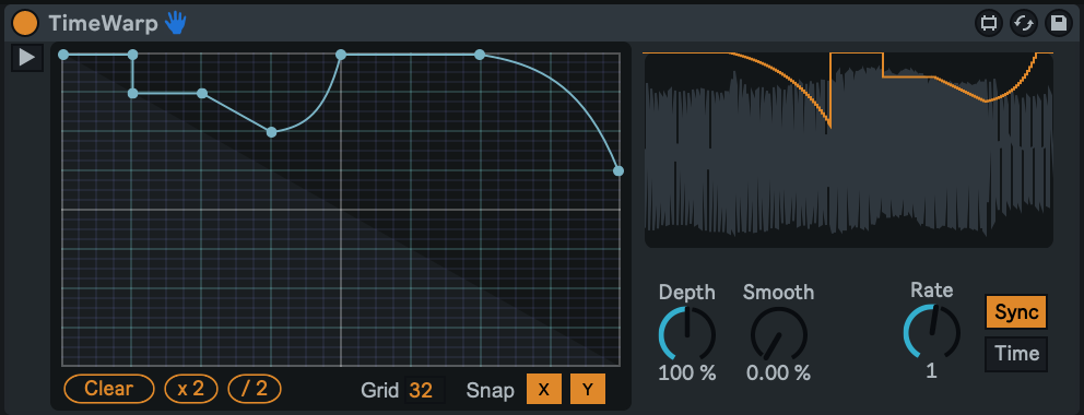 | Description: | Bend time to your will — or at least make it wobble a little. TimeWarp is a Max for Live device that lets you nudge, tug, and stretch the flow of time in your audio using a simple and intuitive breakpoint graph. Take a boring sample and flip it into something unique and undeniably you. Re-arrange drum loops, add glitchy variations, or introduce subtle pitch shifts. With Depth to control how much time gets bent, Smooth to ease out the jittery bits, and Rate to control the loop speed, TimeWarp gives you flexible rhythmic fun without breaking the space-time continuum (probably). Whether you’re after subtle groove tweaks or full-blown temporal tomfoolery, TimeWarp lets you shape the feel of your audio with ease. Sync it to tempo or go freeform — time is yours to twist. Demo video here: https://www.youtube.com/watch?v=REkS4BadGW8 |