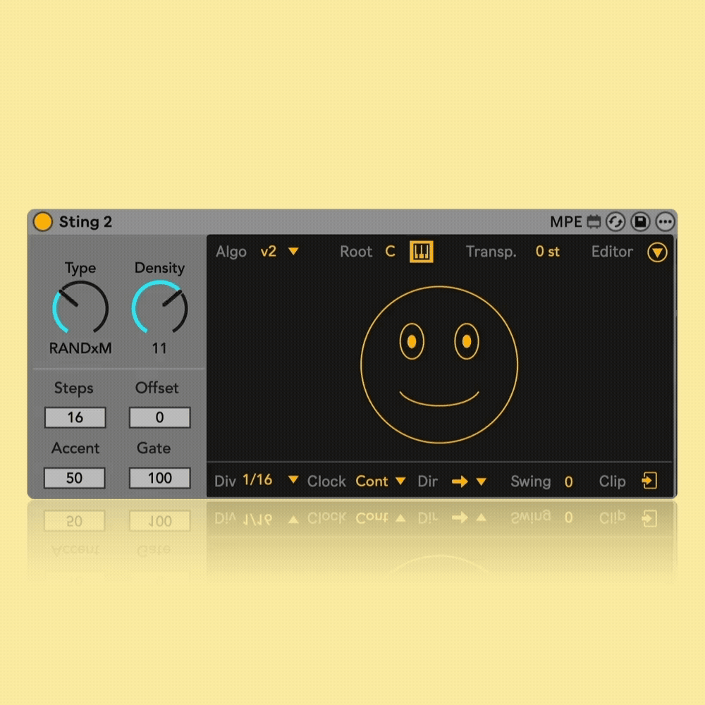 Description: | Version 2.05, added scale awareness, polymeter reset and new push focus modes. Walkthrough video: https://youtu.be/u_5oFDmlny8?si=AGBLd1yaMtnXQXTq The new version of Sting is an expressive, improvisational acid line performance system. It is a Max for Live device that runs on Ableton Live or Push 3 Standalone. Sting can generate anything from random to acid patterns and morph between them fluidly. It features a new generation algorithm, advanced editing, expressive control, generative sequencing, and modulation capabilities, along with a set of live performance oriented features. These include a dedicated Push takeover mode that transforms Sting into a hands-on live performance system when used with Ableton Push 2 or 3. All of Sting’s parameters are logically laid out and fully controllable via Tabbing, making it accessible to blind, visually impaired, and sighted users. Sting is available as either a free or paid download. Both versions are identical; it's simply a way to ensure that everyone can access it, regardless of their ability to support my work. |