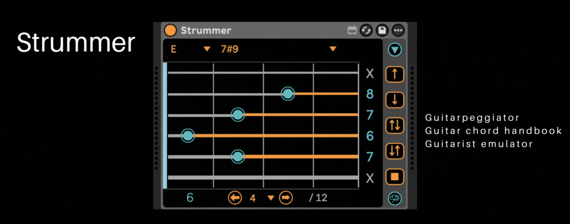 | Description: | Guitarpeggiator, guitar chord handbook, guitar player emulator Strummer is designed to help you get guitar voicing and playing into your music. 🎹 MIDI chord in –> 💻 Chord diagram on screen –> 🎶 MIDI notes out 🎧 Plays with MIDI from all sources Chordographer works with both MIDI input from an external device and MIDI from pre-existing clips. 🤖 Knows loads of chords Thanks to Zoltán Szabó's chord database on GitHub, Chordographer knows 69782 chord shapes, including jazz chords, slash chords, and multiple voicings. 🧮 Guitarpeggiator Strum rate and note sustain both sync with project tempo, turning the plugin into an arpeggiator that plays along just like your very own robot guitarist would. 🎸 Play along yourself See ready-to-play chord diagrams for all your MIDI clips, helping you add your own layers of real guitar. Made by David McFarlane at Weather Systems https://weathersystems.carrd.co https://instagram.com/weathersystems_ Original concept from Scott Morris |