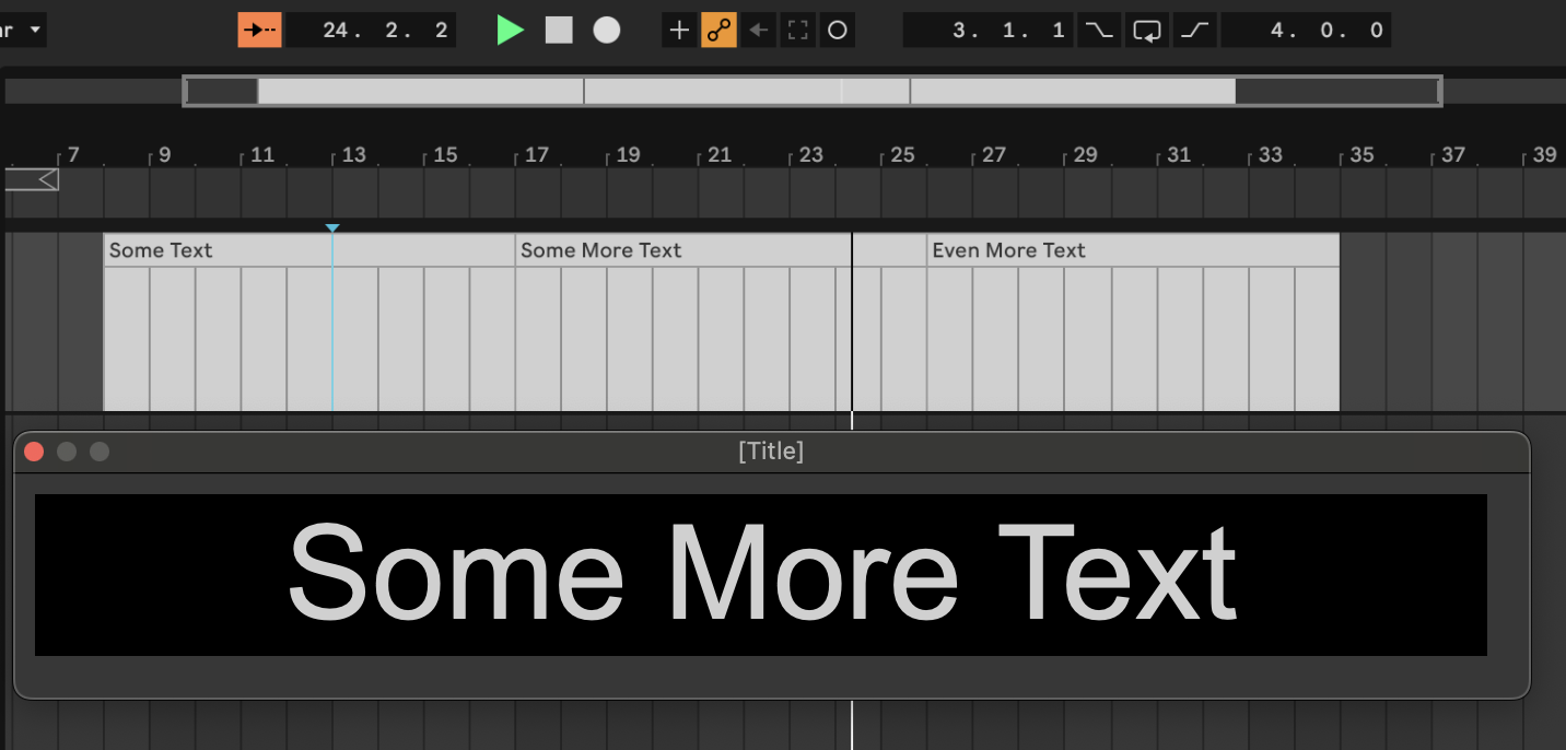 This device displays the names of MIDI clips on a MIDI track in a floating window. Useful if you want to see titles or written notes when performing live.
