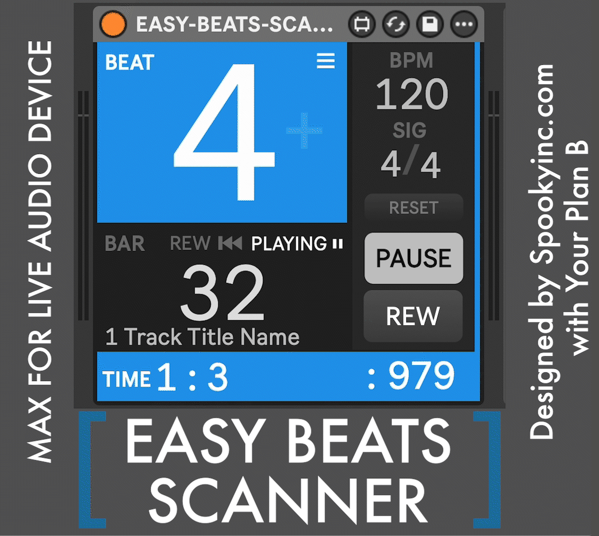 | Description: | EASY BEATS SCANNER is a large font, easy to read, slim + lightweight Audio MaxforLive Device • Beat and Bar Counter • Time Counter (especially good for scoring video) • Track Title and Label color (with swappable black and white info text for darker + lighter labels) • Click to Expand panel to adjust BPM Tempo and Time Signature • Play, Pause and Stop/Rewind controls https://youtu.be/3ePrGVepreY |
