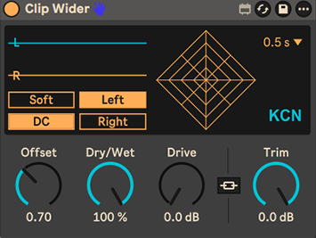 | Description: | A Max for Live device that expands stereo width by applying opposite-polarity DC offsets to the left and right channels before clipping. Ideal for use on kicks or bass when a unique stereo spread is needed, such as in hyperpop production. Bug reports & feedback: cyankapota@gmail.com |