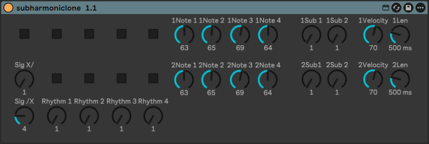 | Description: | There's a subharmonicon here https://maxforlive.com/library/device/7223/vlm-subharmoniclone-microtone-sequencer but I didn't understand it and also wanted to use it on my Push. So I made a different one, with the same general goal of having that polyrhythmic sequencing, but also with Push support and simpler (eg there's no 'playing multiple of the same note' solutions or setting the pitchbend here). This is my first Max for Live device - if you see any bugs please let me know! I made a 1.1 version to update some very small bugs, and also made an expanded version with some additional options (eight-step sequences where you can change sequence length, and you can add harmonics as well). They're both on the gumroad for free. I attempted to upload the update here also ... hopefully it worked, though the file seems the same as it has been for me ... so ... your mileage may vary. |