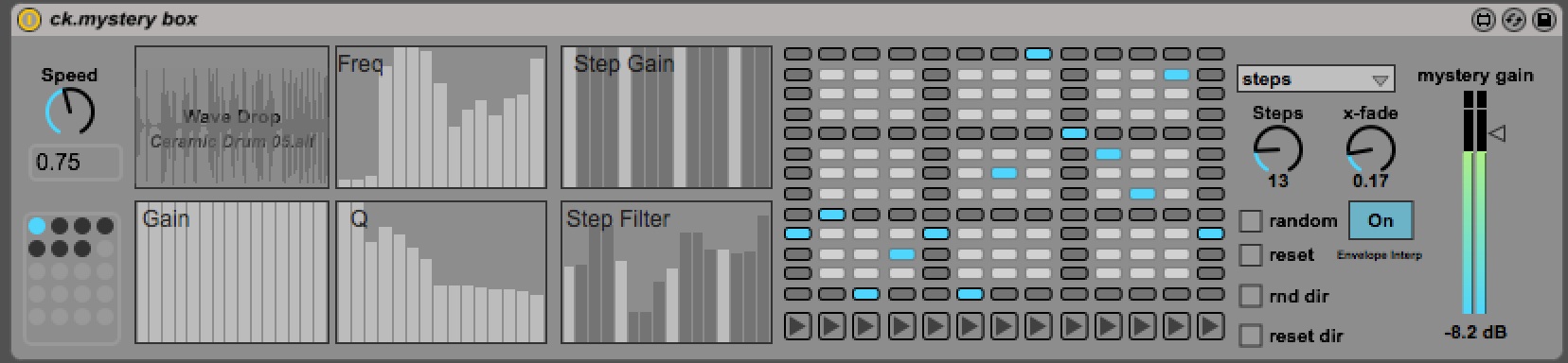 | Description: | drop in an audio file, hit a preset from the preset box. get mystified. based on mystic code from the mythical c74 forum. |