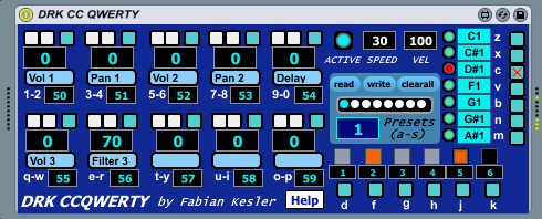 Description: DRK CCQWERTY converts the standard QWERTY keyboard from the computer into a multiple MIDI controller.