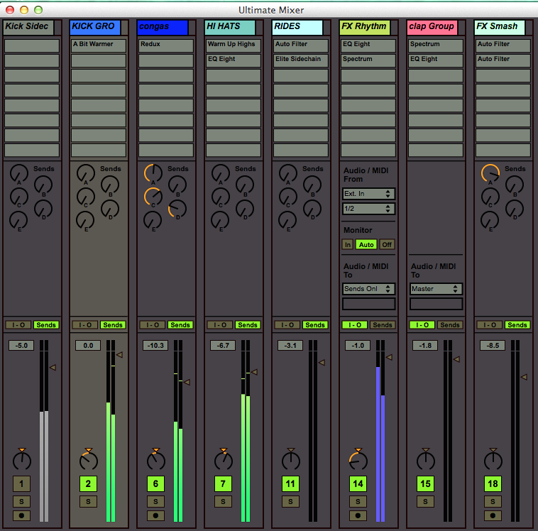 maesojua: I did develop that but I couldn't manage to represent exactly the numbers of Live, for example: in Live, volume box display -3.5 and in Ultimate Mixer -4.3. So, because of that, I decided to not include peak and volume representation in v1.0, but is one of the things I would love to add in future versions! Cheers!