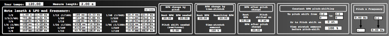 4) Sick calculator (BPM change by time-stretch) - Shows amount of time-stretch needed to move from BPM1 to BPM2.