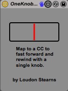 | Description: | This device scrubs through the arrangement view forward or backward. Map to a single CC and you can easily fast forward or rewind. Open the patch for nice examples of using function to fine tune the behavior of a slider, and creating interactive dynamic interfaces. |