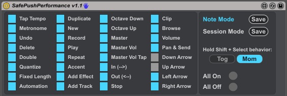 Would be nice to be able to disable the up/down buttons ONLY when in note mode but not in session mode. Every time i hit one of those during a performance i get crazy results if i forget to switch to session mode first.