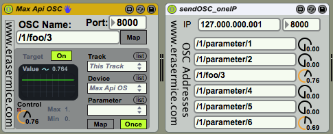 Description: A really simple building block for mapping any incoming OSC message to any live API parameter! Handy if you forgot an OSC name/address too!