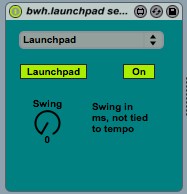 Description: Launchpad sequencer. Set up like a bunch of Maschine grids. Page left/right selects between the second three sequencers. Top left button on the launchpad is start/stop. Only just got it working so hopefully better versions to follow with much better instructions :)