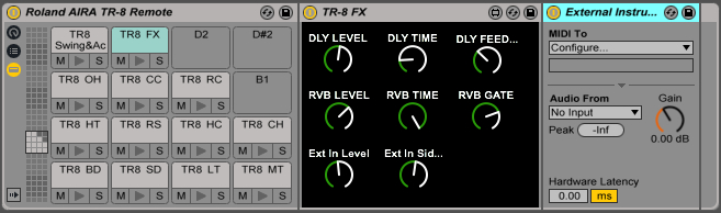 Description: The Drum Rack is assigned to the note numbers and the controllable parameters of the drum parts, the side-chain and the effects (except Scatter) of the Roland AIRA TR-8, so that you can directly manipulate and record them while playing which is currently not possible with the TR-8 sequencer.
