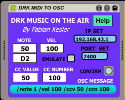 Hi - I've downloaded this and trying it with M4l 6.1.9 and Live Suite 9.1.7.. not seeing any network packets on any of my interfaces, no matter what IP i put in the box (and click confirm) I'm a unix admin by day, so i know how to use tcpdump to sniff networks and yeah, nothing at all being generated that I can see. The UI is showing the messages it thinks it's sending when I plug some notes into it, but nothing coming out. Am i doing something wrong?