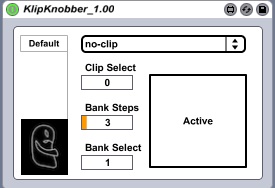 | Description: | Short video demo http://youtu.be/YnN4V6DIkew This small device lets you create a banks of clips in which to browse through. Load the device in any Audio Track containing some clips. Clip Select: Select Clip in Bank (max== number of Clips per Bank) Bank Steps: how many Clips in a Bank Bank Select: the number of Clip Slots in a Track will be divided by the number of steps, which will result in 1 or more Banks with equal number of Clips. The number of Clip Slots in a Track in Session View is equal to the number of Scenes (always in Session View). Active activates selection and triggering. Example Track 1 has 9 Clip Slots. I want each Bank to be composed of 3 Steps (Clip slots) This will result in 3 Banks which I can select with "Bank Select". Each Bank contains 3 Clip_slots which I can select via "Clip Select". If the Clip Slot Contains a Clip the Clip will be triggered on Selection. If there is no Clip, but a Stop Button is present, the Stop Button will be triggered, stopping any other running Clip. All controls are MIDI mappable. Push version will be available soon @phantasmeano.com Enjoy J. (once you get how to use it it is very simple, and one can organize Banks in genres for example, and brose through each genre...) For the moment, this is an AUDIO device e basta :-) |