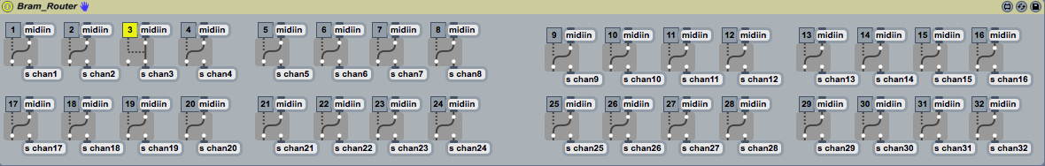 | Description: | If you're in the habit of working with rather extensive Ableton Live projects and multiple MIDI controllers, you are undoubtedly familiar with the problems caused by having to adjust Live's internal routing while being in the middle of a jam or recording session: You've just been sequencing a drum clip using e.g. your Ableton Push, but then you want to switch over to e.g. your QuNeo to add some live percussion, but since e.g. your Bass Station II is running a sequence of it's own, just setting the drum-track's 'MIDI From' to 'All Ins' is simply not an option. So, as you probably know all too well, the only option left is assigning a dedicated track to the QuNeo and then change it's 'MIDI To' settings on the fly to match with whatever you want to do next. However, changing this routing unfortunately causes Live to freeze for a second, potentially messing up the sync between Live and some of your external hardware instruments and generally causing a whole bunch of anger, vexation and despair... Which is exactly what drove me to create a Max for Live device that would once and for all get rid of this problem: a really astonishingly simple yet quite ingenious 32 track MIDI router and receiver that allows you to assign any MIDI controller to any instrument track on the fly without ever having to worry about potential freezes or losing sync with your external hardware again, imaginatively called Live MIDI Router / Receiver. Just create a dedicated MIDI channel for each controller (set it's 'MIDI From' to the controller in question, set 'MIDI To' to 'No output' + arm the track) and drop an instance of the 'MIDI_Router' device on it, create as much instrument tracks as you need (set the 'MIDI From' to 'No Input') and drop an instance of the 'MIDI_Receiver' device on every single one of them: You are now able to assign a MIDI controller to an instrument by making a one-on-one connection between a router and a receiver by selecting a track number on both the router and receiver, et voila... Oh, and if you think these devices look somewhat strange when compared to other Max for Live devices you know, that is because I believe in the idea of 'transparent software': by letting the user actually see how a given program or patch works, one is able to both demystify the realm of software and empower the user to modify, tweak and gain mastery over the software he or she uses, instead of being hopelessly subjugated by it. And after all, is that not exactly what life is about? ;-) P.S.: As the device actually consists of two devices (Router and Receiver), the download is a .zip-file, just containing the two .amxd- files. Enjoy! |