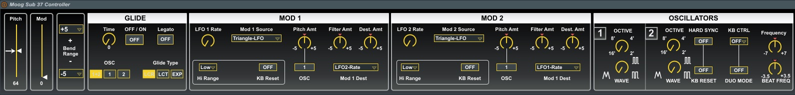 | Description: | A controller for the Moog Sub 37. My second M4L device. I will be making improvements in the future like adding the presets and NRPN functions once I learn how. I hope you all enjoy and find this useful! (fixed the automation on some of the parameters) |