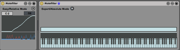 Absolute mode: each note has its fixed slider. Relative mode: the sliders are mapped to the range of the bandpass.