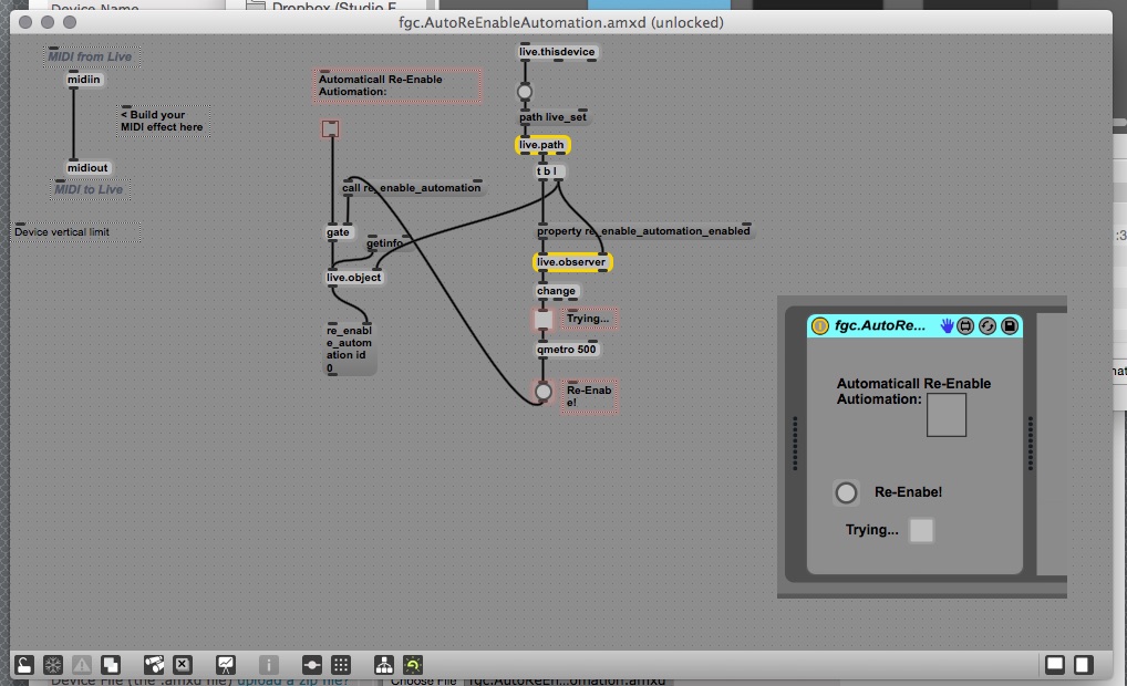 | Description: | Forces Automation to Stay In Place! Overcomes bug, in which playback deviates from automation settings. BUG DISCUSSION: https://cycling74.com/forums/topic/re-enable-automation-turning-on-randomly/#post-343610 |