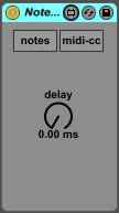| Description: | midi note delay This is a simple utility to delay midi notes or midi-cc. The delay applies to the messages which buttons are enabled. |