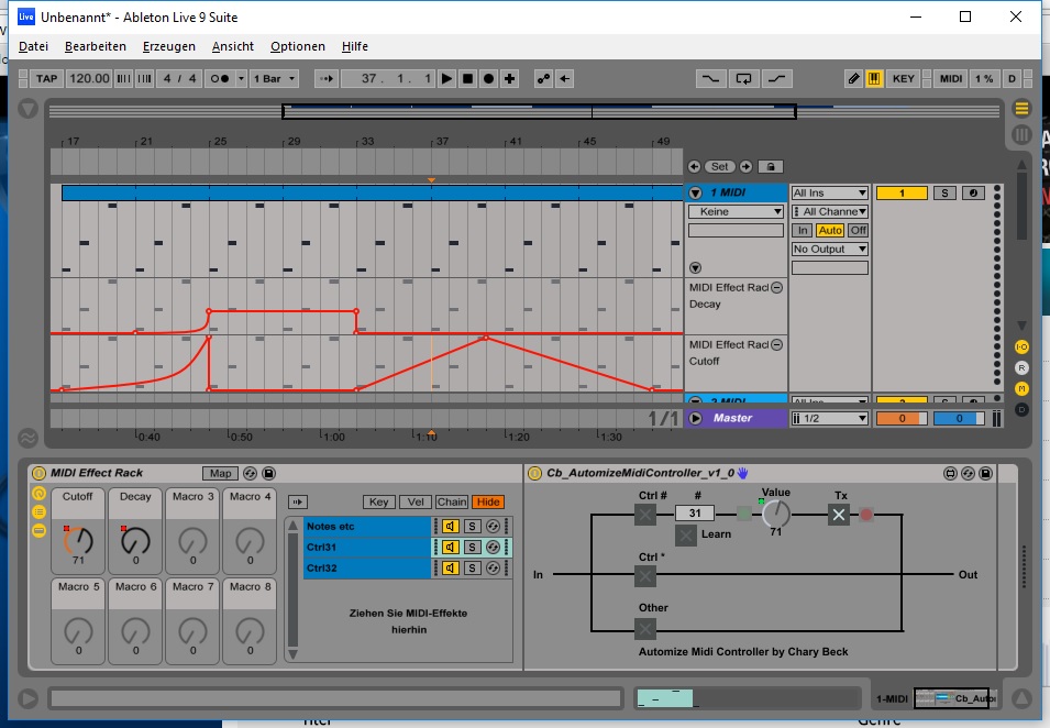 | Description: | This little tool allows you to control a midi parameter with the live automation view. i found this gives a much better overview rather than automating the controller inside the midi clip. |