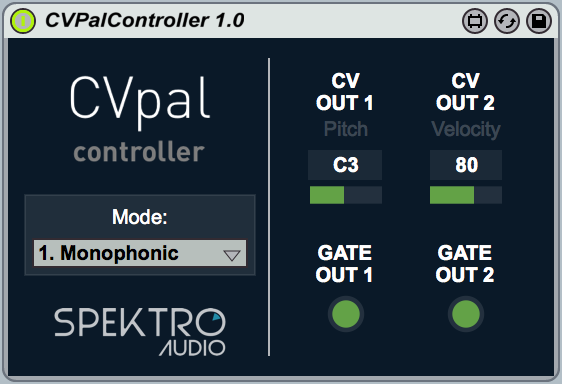 | Description: | Device for controlling the Mutable Instruments CVPal module. The CVpal Controller was designed to help improve the Mutable Instruments CVpal workflow by proving a graphical interface for all the different modes available in the CVpal. When a different mode is selected via the drop-down menu, the controller automatically updates the UI (to display the corresponding controls and parameters for that particular mode) as well as the MIDI Output Channel of the track. This allows the users to switch between modes without having to remember the details about them (such as corresponding MIDI channels, MIDI CC#, MIDI Notes, etc). This device also provides an interface for the 2 calibration modes. The CVpal Controller is also useful for sending automation to your modular patch via Mode 6 (Controller Conversion). — HOW TO USE - Create an empty MIDI Track in Ableton Live. - Drag the .amxd file into the MIDI Track. - The CVpal Controller will automatically set the output of the MIDI Track to the proper MIDI port (CVpal) and MIDI channel (1–16) depending on the selected Mode. - The MIDI Track must contain only the CVpal Controller device and other MIDI devices (Arpeggiator, Scale, etc). It cannot contain any instrument otherwise the MIDI signals will not be properly routed to the CVpal module. - Optional: Create a separate Audio Track for monitoring / recording the signal coming from your modular. — Changelog: 1.0: Initial Release — Known Bugs: - The Duophonic mode (#5) might not work 100%. I'm still working on it and my goal is to fix it in the next update. — CVpal is a module created by Mutable Instruments. For more information about CVpal, visit http://mutable-instruments.net/modules/cvpal For more MaxforLive devices, visit http://spektroaudio.com/ |