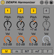 | Description: | This device changes monophony (Audio) to harmony. Pitch : -24st ~ 24st Preset : M, m, M7, m7, 7 |
