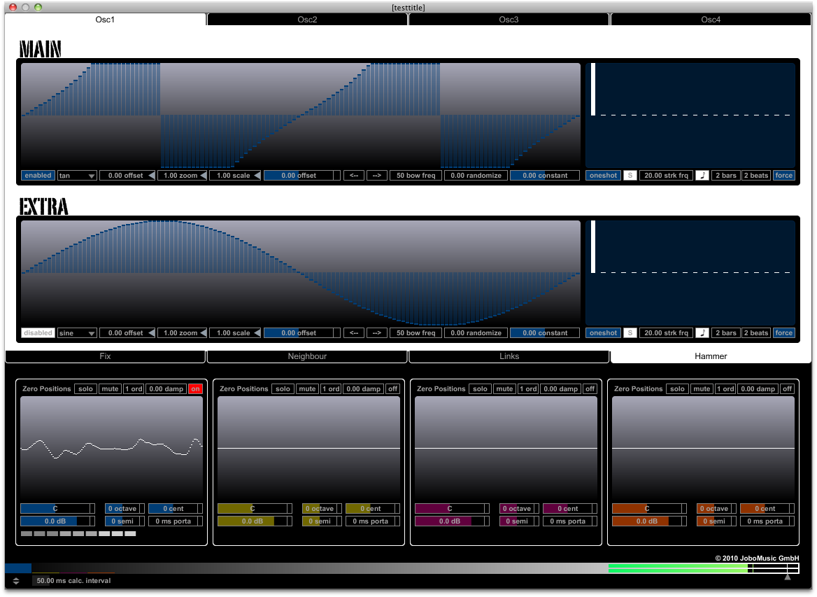 | Description: | A scanned synthesizer using a mass-spring model to create a dynamic wavetable. It features: - four oscillators that can be used in parallel or according to "note stack order" - independent settings of each spring with functional A to B interpolation - generative functional hammer shapes that can be plugged or bowed - spring connections between oscillators that can simulate sympathetic strings - sophisticated and intuitive user interface NB: This version does not support saving presets and automation. |