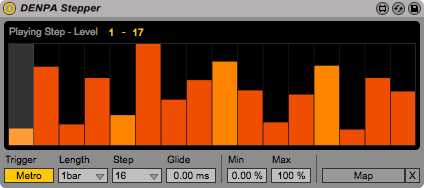| Description: | Step Modulator Trigger : Metro / Note Length : 1/4, 1/2, 1bar, 2bars, 4bars, 8bars, 16bars Step : 4, 8, 16, 32 |