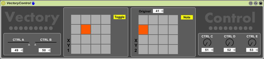 | Description: | Simply control Vectory (Reaktor Ni) with live. You can use Toggle Buttons or Slider XY. If you use vectory with kore2 change the assignments of controler XY2 Slider or use note Button. Learn the buttons to your midi controler (Launchpad is GooD). 1.1 Bug Note OFF Fixed (to record middi it is better) 1.2 i add Visual Metronom. Sorry for my english :) |