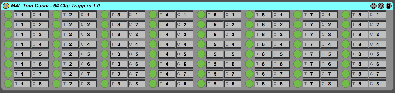 | Device File: | M4L Tom Cosm - 64 Clip Triggers 1.0.amxd |