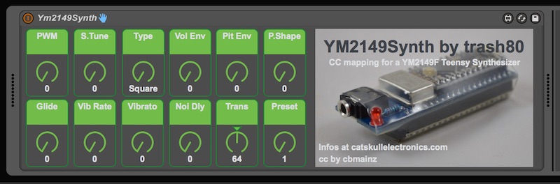 Description: CC mapping for a YM2149F Teensy Synthesizer by trash80.