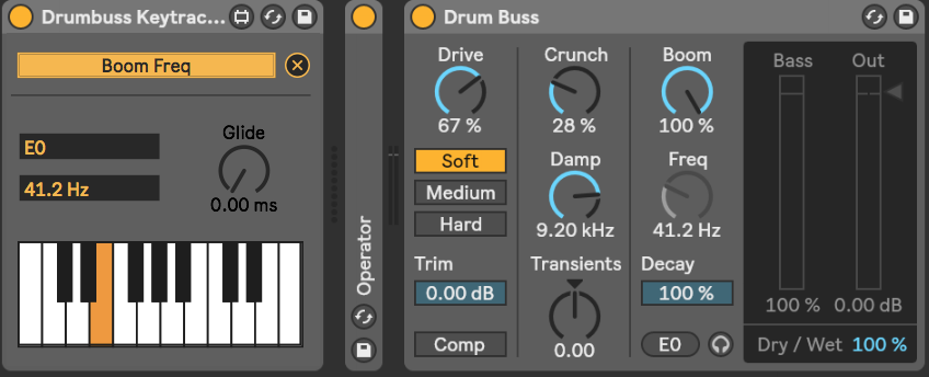 | Description: | Device to be assigned to the "boom freq" of Drum Buss. Sorry for not freezing the device the first time, this is my very first m4l device, I hope it works now! :) Still working on improving the glide function btw. |