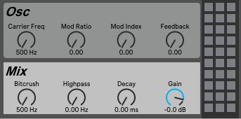 Description: Cymbiot is a device designed to generate cymbals. It utilizes phase modulation and deliberate aliasing ("bitcrushing", as it's often called) to create its sounds. This is a very different and more computationally efficient approach compared to the one commonly seen, which attempts to emulate classic drum machines such as the 808. In my personal opinion, it's also much more simple and flexible- changing a parameter even a little bit can drastically alter the resulting sound. I've included a preset feature as well. It can be automated in Ableton, giving the user the option to switch between up to 30 sounds during their song, while only having to automate a single parameter.