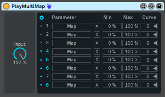 | Description: | Just a simple hack of the Multimap device with the input knob also mapped to the play state. Play = 127 Stop = 0 |