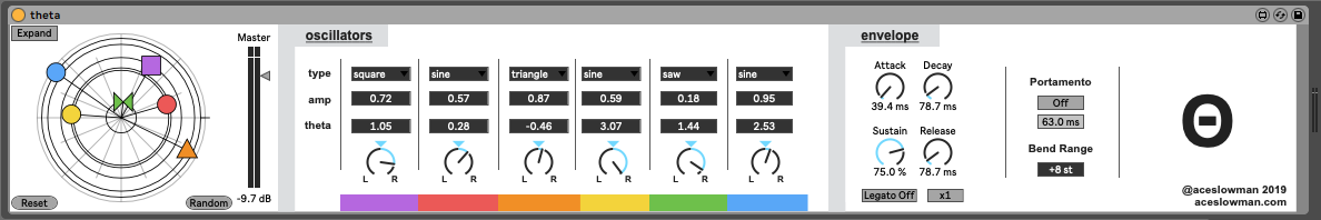 | Description: | Θ is a multiple carrier fm synth that allows you to arrange overtones around a geometric UI. |