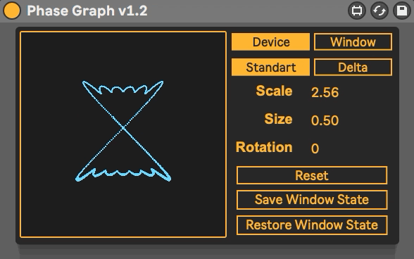 | Description: | Phasescope. It works in two modes, and the second mode [Delta] is quite experimental! Hope you enjoy. It also works as an external window. Window if fully resizable, ESC for fullscreen. Changelog: v1.2 Added Display Rotation Theme colors fixed v.1.1 Now the device works even if Live transport is stopped. v1.0 The first release of the device Overview: https://youtu.be/Gw9xqXBPXG8 |