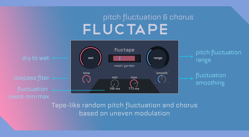 | Description: | Inspired by analog pedals, Fluctape creates tape-like random pitch fluctuations and chorus based on irregular intervals. You can also decide the min/max random event time and the pitch fluctuation range. Featuring: Wet/Dry knob Lowpass filter Pitch fluctuation range Fluctuation smoothing Pitch fluctuation min/max event All parameters mapped to Push knobs and MIDI mappable Version 1.1 free update: all the knob parameters are saved in the project. Audio demos at the link below. |