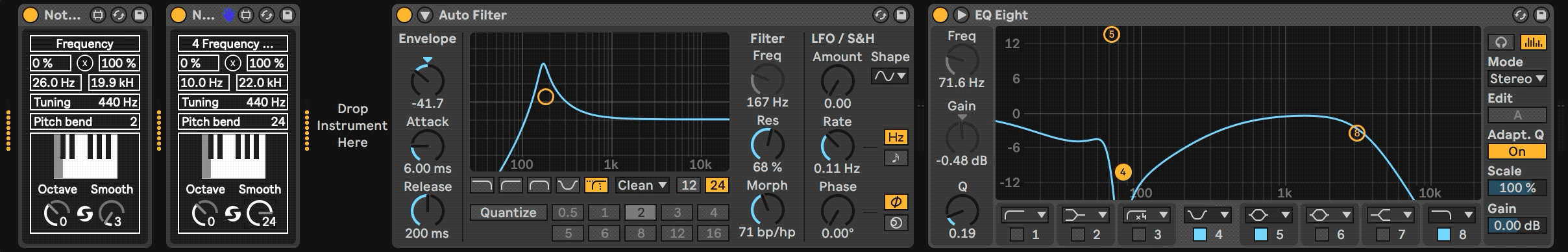| Description: | Note Follower 1.3 converts incoming notes into frequency automation and lets you map that automation to any device, even a VST plugins. You are able to set the boundaries of the filter frequencies so that it coincides with the boundaries of the device. Also, you can shift octave or smooth automation. Changelog: v 1.3 Bugfixes: - Map button is resetting its state after Set reloading - fixed - Automation jumps to the previous note when the current note send off - fixed v 1.2 - Pitch bend support added - Performance improvements v 1.1 - The first public release |