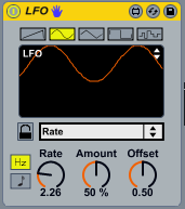 | Description: | A really simple, minimal LFO. By default it binds to the device adjacent, however you can select the device in the top drop down. Modulates at audio rate frequency using live.remote~. PS. this supports devices in racks in the latest beta :) |