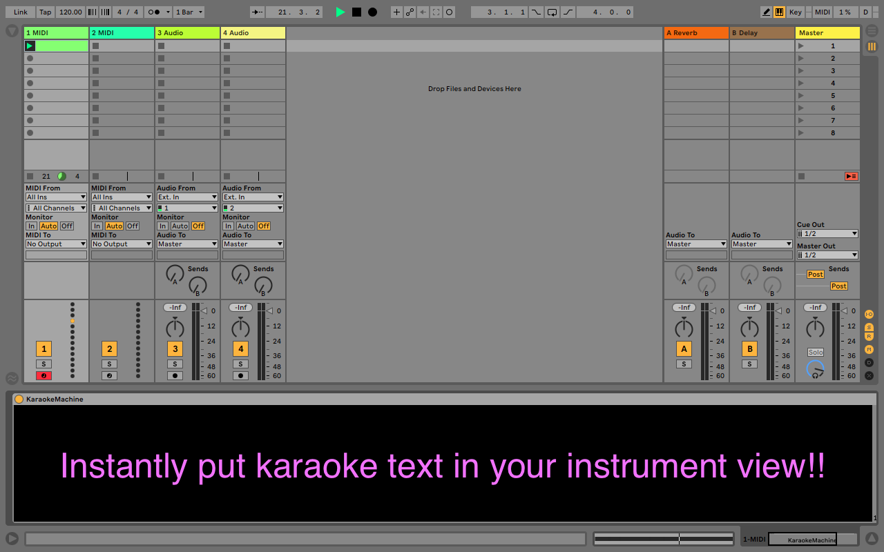 Description: Karaoke Machine allows you to convert the Instrument view into a karaoke panel. It is very simple to use. Each note is one line of text, and you can also adjust the font, size, text color, the background color, and also the width of the karaoke screen itself! This is also great for live session when you want to move people with text.