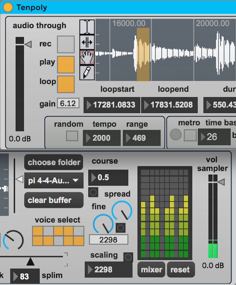| Description: | 10 Voice Polyphonic MC Sampler The device „Tenpoly“ is a ten voice polyphonic sampler tool, inspired by Stockhausen's “Kathinkas Gesang” and can be used within Abletons m4l environment. Mo Nahold provides this tool, which he coded during the work on his new release "Tremors" (Ventil Records), as a free download. „In a way, it is some sort of giving back to a digital DIY open source community, where I was always highly profiting“ |