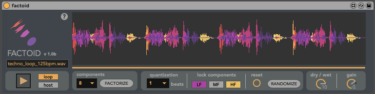 | Description: | Factoid is a Max For Live device that allows you to create endless rhythmical variations of audio clips. It uses machine learning to decompose a sound into a set of layers that are randomly shifted in time to change the temporal structure of the clip. Create new drum patterns on-the-fly, turn melodies into textures, randomize full mixes and experiment with any kind of sound! |